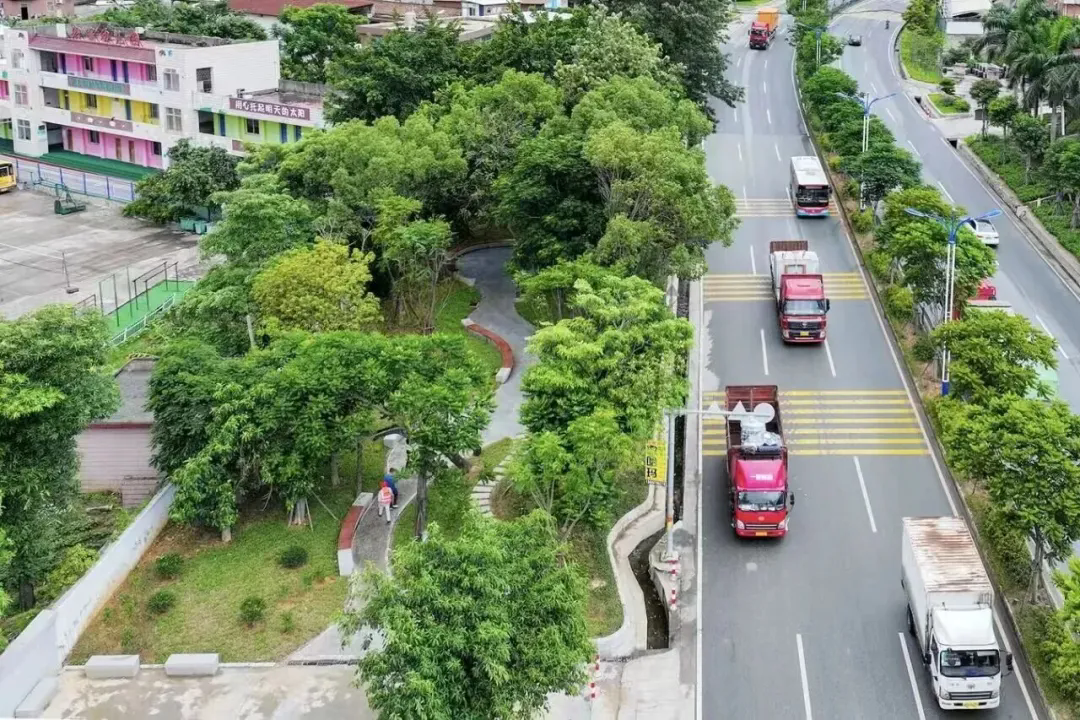 作为南安连接厦门、晋江的重要门户路段,国道G324线官桥段日均车流量大,重载货车占比高。为改造提升该路段,路面升级采用高粘高弹沥青混凝土,对病害严重路段创新应用“刚柔复合”技术,为道路穿上“防压甲”,彻底解决坑洼颠簸问题;同步完善排水管网,解决雨天积水顽疾;沿线新增绿化景观带1.2万平方米,种植秋枫、海桐、金边假连翘等绿植,打造四季常绿的生态绿廊。该工程还将沿线边角地改造为“口袋公园”,增设休闲步道、健身设施等,成为群众家门口的幸福空间。