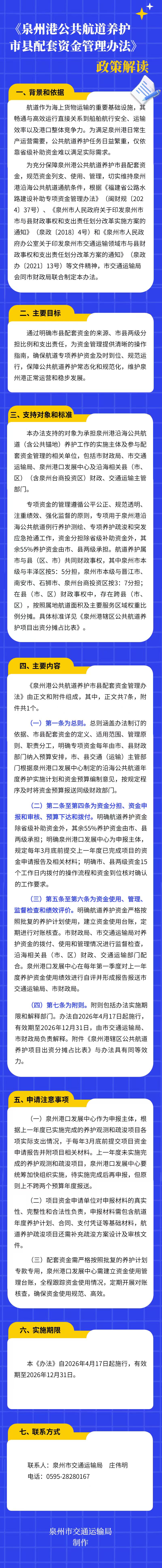 - 《泉州港公共航道养护市县配套资金管理办法》政策解读 2026-03-23
