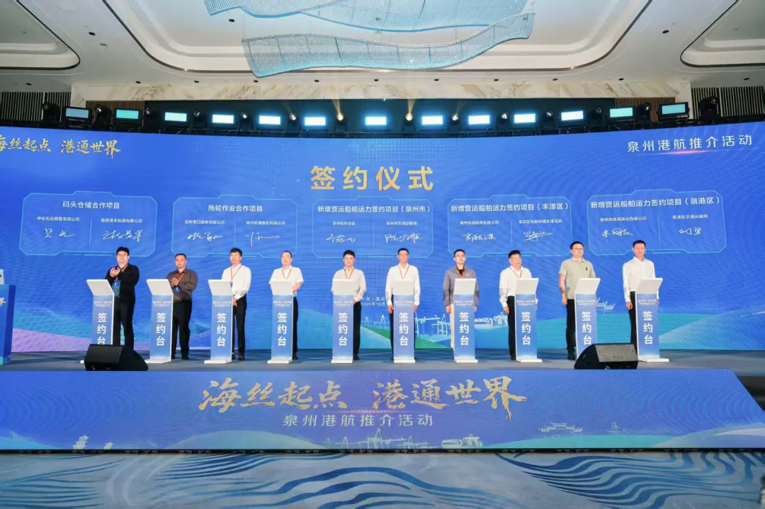 10月23日,泉州举办以“海丝起点 港通世界”为主题的港航推介活动。约250家市内外港口、航运、工贸、物流、金融企业,以及港航类高校代表参加,29个合作项目参与集中签约,签约项目涵盖港口航线、码头开发运营、港口作业服务、新增船舶运力等多个领域。